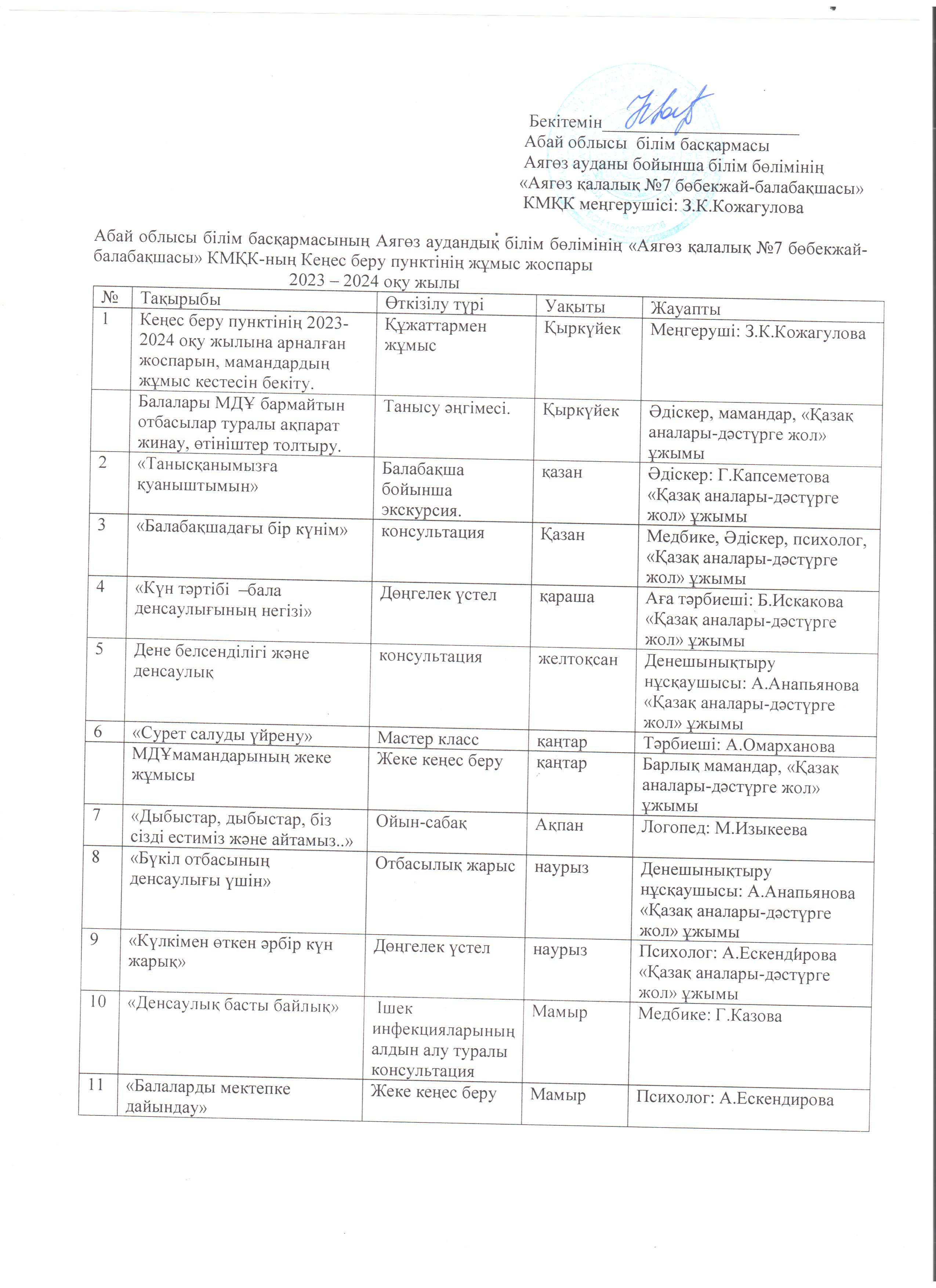Құрметі ата-аналар! Үйде отырған балалар үшін консультациялық пункт ашылды. Келіп өздеріңізді және балаларыңыз үшін керекті ақпаратты алуға болады....